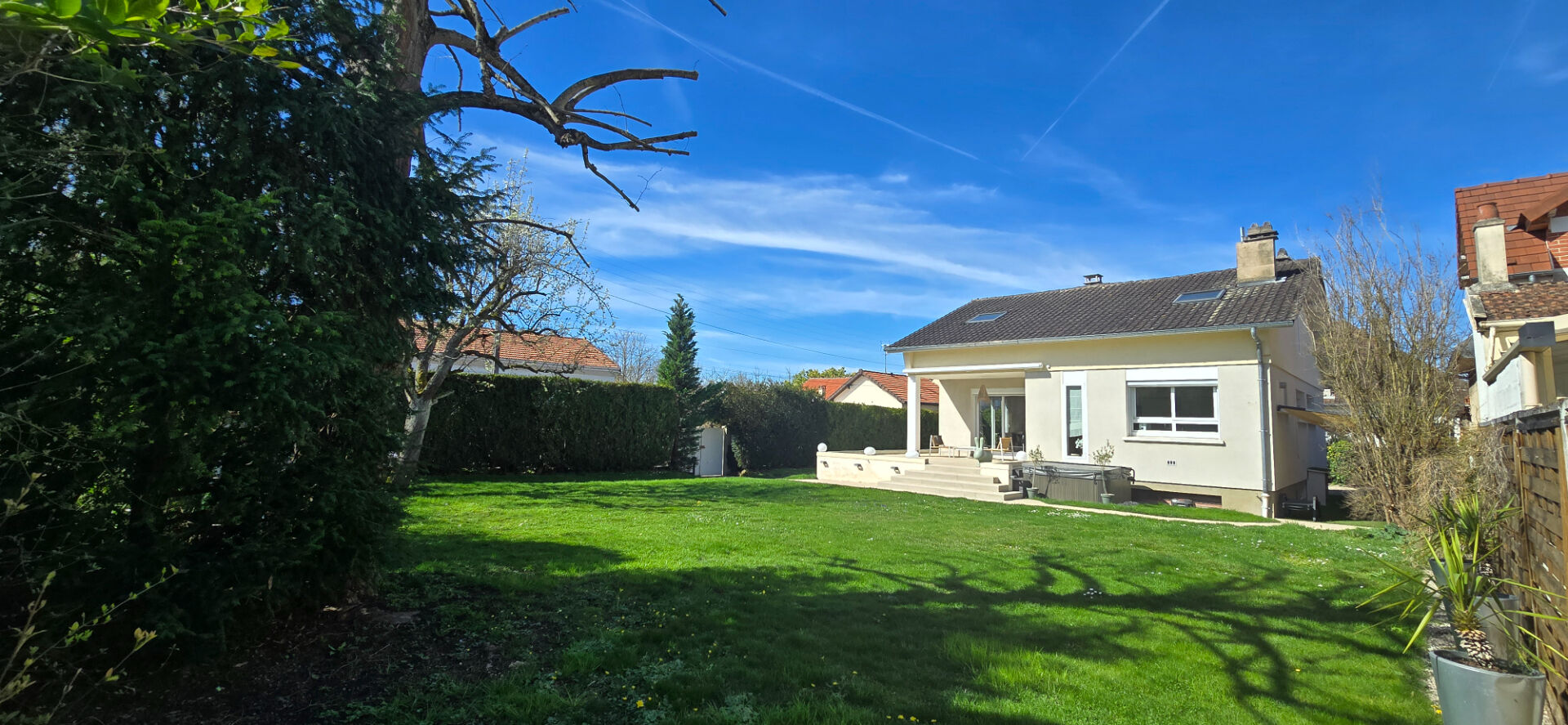 Très jolie longère entièrement rénovée de 200 m2, accompagnée d'une grande grange de 300 m2 avec dalle béton. L'ensemble est situé sur un terrain de 2 210 m2. La maison principale offre de très beaux volumes et une rénovation de qualité. Au rez-de-chaussée, vous découvrirez une vaste pièce de vie de 70 m2, comprenant un séjour lumineux avec cheminée insert et une cuisine ouverte entièrement équipée avec électroménager de marque Bosch et îlot central. Un dégagement mène à une première chambre, une salle de bains avec douche à l'italienne et baignoire, des toilettes indépendantes, ainsi qu'une deuxième chambre pouvant également faire office de bureau. À l'étage, vous trouverez une salle de sport, trois grandes chambres, une salle de bains et un grenier. La maison dispose également d'une buanderie et d'une cave voûtée. Les atouts de cette propriété ne s'arrêtent pas là : une grange de 300 m2 en excellent état structurel, avec électricité, complète l'ensemble. Idéal pour un projet professionnel, un atelier, du stockage ou une extension d'habitation selon vos envies. Le jardin, arboré et agréable, accueille plusieurs arbres fruitiers et deux puits. Maison au calme dans un charmant village, à proximité des écoles, commerces et gares. Nogent-sur-Seine se trouve à 15 minutes, Provins à 20 minutes.