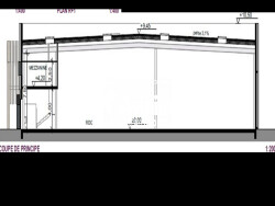 * Caractéristiques: - RDC 900 m²; activités / stockage, wc - R+1 126 m² : bureaux, wc. - Hauteur libre 7,50 m en RDC - Hauteur libre 4 m sous mezzanine - Porte sectionnelle de 4,5 m x 4 m: 1 - Quai niveleur (2,80 m x 3 m) - Charge au sol: 3T /m² - Sanitaires PMR carrelés - Electricité: tarif jaune - Mezzanine aménagée en bureaux