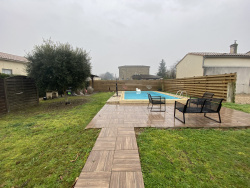 L'agence immobilière RIVAL, vous propose cette maison d'environ 150 m2 habitable sur 991 m2 de terrain plat avec piscine sur la commune de LALANDE DE POMEROL à 5 mn de LIBOURNE. Ce bien comprend : une entrée depuis une terrasse couverte, une cuisine fermée avec son ilôt central, un salon-séjour de 39 m2 avec un poële à bois, 4 chambres dont une à l'étage de 26 m2 sur laquelle on peut y faire une salle d'eau et un wc. Une arrière cuisine de 8 m2, une buanderie de 10 m2 et un atelier de 8 m2 qui peuvent être modifié à votre convenance. Une salle d'eau et deux wc compléte l'intérieur de ce bien. L'extérieur est aménagé avec un coin piscine ( 8x4 liner, fond en légére pente ) et son carport pour la détente, un puits avec son eau. Au niveau du parking plusieurs véhicules peuvent stationner à l'intérieur de la parcelle. Honoraire de l'agence à la charge des vendeurs