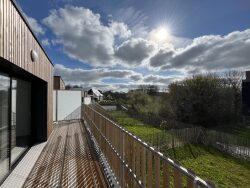 Elle bénéficie d'une architecture contemporaine avec l'intégration de matériaux qualitatifs et pérennes, pour une bonne performance énergétique. La maison dispose : d'un large balcon et d'un jardin orientés Sud, de plancher chauffant, de carrelage ou parquet au choix, d'un radiateur sèche-serviette dans la salle de douche de menuiseries extérieures aluminium avec volets roulants électriques centralisés de baies vitrées au Sud de 3 mètres de large d'un WC suspendu par étage.