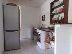 Elle est composée d'une pièce de vie conviviale avec séjour ouvert sur la cuisine, de deux chambres, d'une salle d'eau avec WC et un bidet. A l'extérieur, deux terrasses, dont une couverte, un jardin entièrement clos avec droit d'eau (idéal pour jardinage ou potager). Cette maison est reliée au tout-à-l'égout