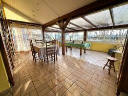 Comprenant une entrée, un dégagement, un débarras, un salon-séjour avec accès véranda, une cuisine séparée (possibilité d'ouvrir sur le séjour) aménagée donnant accès à une terrasse exposée OUEST avec vue sur champs et un WC séparé.