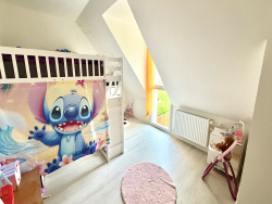 À l'étage, l'espace se compose de trois belles chambres, d'une salle de bain ainsi que de WC séparés, parfaitement adaptés à la vie de famille.