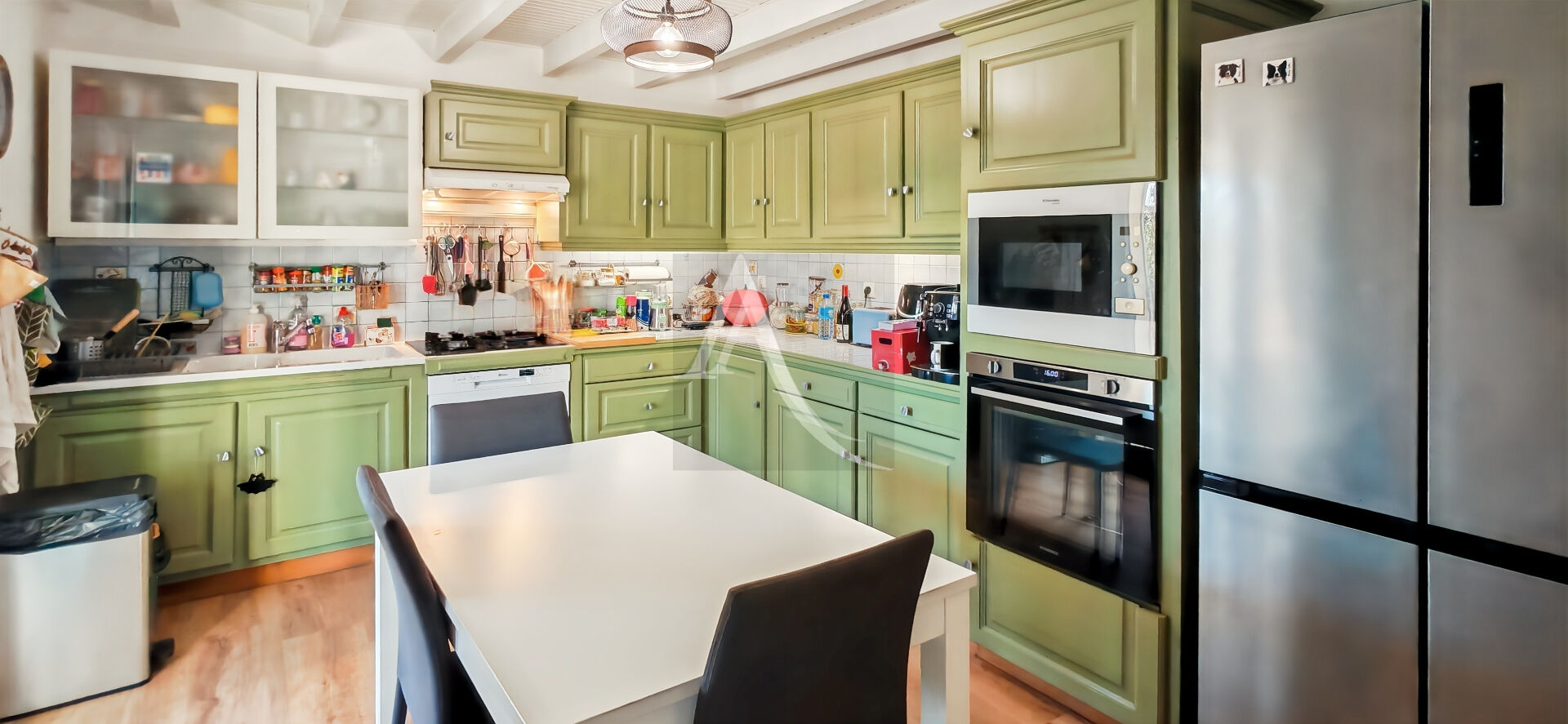 Située à Monsempron-Libos, à proximité des écoles et des commodités, cette maison de 5 pièces développe environ 118 m² habitables et est implantée sur un terrain clos et arboré de 2 000 m². Elle se compose d'une pièce de vie traversante comprenant un salon avec insert, une salle à manger et une cuisine équipée ouverte. L'ensemble donne accès à une terrasse couverte, permettant un usage extérieur confortable. La partie nuit comprend quatre chambres, dont une avec salle d'eau privative, une salle d'eau indépendante avec double vasque et douche à receveur plat, ainsi que des WC séparés. Un sous-sol semi-enterré complète le bien et accueille notamment une buanderie, un atelier et des espaces de rangement, avec un potentiel d'aménagement supplémentaire. A l'extérieur : terrasses couvertes et découvertes, espace prévu pour une cuisine d'été, verger, garage indépendant pour deux-roues (environ 13 m²), stationnement possible sur la parcelle. Équipements et confort : isolation des murs par l'extérieur et isolation des combles récentes, menuiseries PVC double vitrage, volets roulants électriques, deux climatisations réversibles, pompe à chaleur pour le chauffage central, installation photovoltaïque avec contrat de revente en cours, portail motorisé, raccordement au tout-à-l'égout. Le jardin, de belle superficie, offre un environnement calme et verdoyant, adapté à un usage familial.