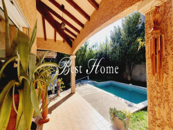Venez découvrir cette très agréable maison de 115 m2 habitables, élevée d'un étage (R+1), nichée au coeur d'un magnifique jardin arboré, au calme en fond d'impasse. Elle se compose, au rez-de-chaussée, d'un hall d'entrée, d'une cuisine aménagée et équipée ouvrant sur une terrasse couverte avec barbecue, ainsi que d'un séjour double de 31 m2. Ce bel espace de vie, baigné de lumière grâce à de larges baies vitrées, bénéficie d'une exposition Sud-Est et offre une vue apaisante sur la verdure. Toujours de plain-pied, vous trouverez une chambre avec placard et accès direct à l'extérieur, un dégagement avec grand rangement, une spacieuse salle de bains ainsi que des toilettes indépendantes. À l'étage, un dégagement dessert deux autres chambres avec placards, dont une avec accès à une terrasse de 14 m2 exposée Ouest. Une salle de bains et des toilettes indépendantes complètent ce niveau. Un accès aux combles offrant la possibilité de créer un espace supplémentaire : une chambre,un bureau ou une salle de jeux, en fonction de vos envies. À l'extérieur, le terrain clos et arboré accueille de beaux cèdres, des oliviers, ainsi que deux charmantes capitelles ( abris de jardin) qui apportent beaucoup de cachet à l'ensemble. Un puits avec pompe permet l'arrosage du jardin. Vous profiterez également de 40 m2 de terrasses couvertes et une pergola, d'un garage de 22 m2 avec mezzanine avec coin buanderie, accès directement à l'habitation, ainsi que d'un espace de stationnement pour deux véhicules. Une piscine traditionnelle sans vis à vis vient parfaire ce bien. Cette maison est idéale pour une famille ou pour une retraite paisible, dans un véritable écrin de verdure. Ce bien est présenté par l 'Agence Best Home 6 Place Questel à NIMES. Tel : 04 66 29 03 30 Email: contact@best-home.fr / Contactez Annabelle LAFON au 07.61.78.11.87, Email : annabellelafon.besthome@gmail.com sous la carte numéro ADC 3002 2018000026953 délivrée par la CCI du Gard. Les informations sur les risques auxquels ce bien est exposé sont disponibles sur le site Géorisques : www.georisques.gouv.fr