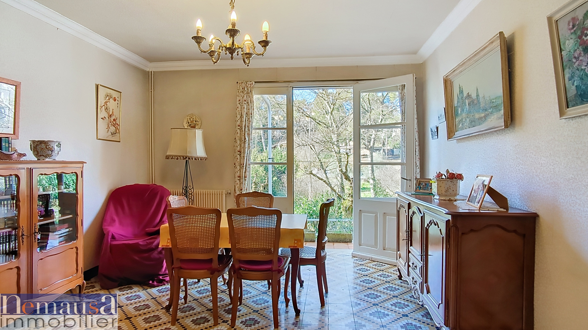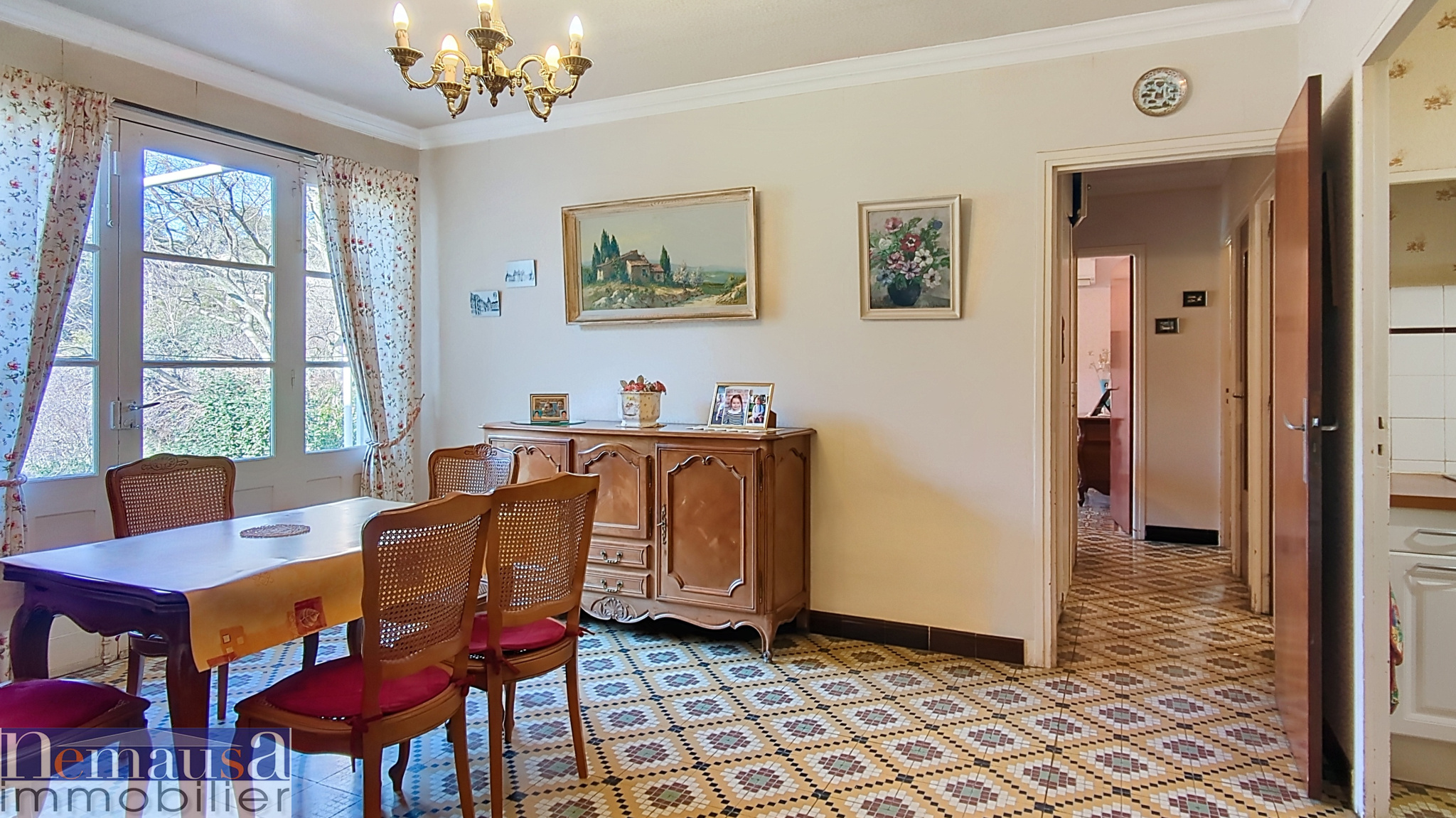 Nouveauté ! Charmante Maison de Plain-Pied avec Jardin, Terrasses et Garage À Découvrir Sans Tarder ! Découvrez cette agréable maison de plain-pied de type 5, offrant 110 m2 habitables, de belles terrasses (couverte et découverte), un jardin intimiste et un garage. Dès l'entrée, un sas puis un vaste hall vous accueillent avant de rejoindre un salon chaleureux avec cheminée/insert, exposé Ouest, ainsi qu'une spacieuse salle à manger de 28 m2 baignée de lumière grâce à son ouverture plein Sud. La cuisine ouverte aménagée, complète harmonieusement cette pièce de vie conviviale donnant accès à la terrasse couverteet à la terrasse bois non couverte. Côté nuit, vous apprécierez une chambre avec dressing et accès extérieur, ainsi que trois chambres supplémentaires. Belle hauteur sous plafond et volumes agréables ! Un portillon indépendant permet l'accès direct à l'une des chambres, aujourd'hui transformée en bureau, idéal pour une profession libérale ou un espace de télétravail indépendant. La maison est en excellent état, équipée de double vitrage PVC, volets roulants, moustiquaires et bénéficie d'une bonne isolation (dalle porteuse). Les combles offrent un espace de rangement supplémentaire. Un forage avec pompe neuve vient compléter les prestations. Secteur Mas de Possac, Sud Est de Nîmes proche des accès autoroutes et direction gare TGV Manduel Pont du Gard, au calme proche de toutes commerces. Ce bien vous est présenté par l'Agence Best Home, 6 Place Questel à NîmesTel 04 66 29 03 30 email contact@best-home.fr Contact direct : Annabelle LAFON Tel 07 61 78 11 87 EMAIL annabellelafon.besthome@gmail.com Portage salarial en Immobilier Carte Nîmes noADC 3002 2018000026953. Les informations sur les risques auxquels ce bien est exposé sont disponibles sur le site Géorisques : www.georisques.gouv.fr