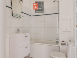 Rénové récemment, il offre une entrée desservant un vaste séjour, une cuisine indépendante récente, une salle d'eau ainsi qu'une salle de bain. L'appartement bénéficie de fenêtres en double vitrage équipées de volets roulants.