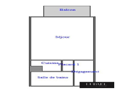 L'appartement se compose d'une entrée avec placard et espace buanderie , d'une salle de bains avec WC, d'une kitchenette fonctionnelle et d'un séjour ouvrant sur un balcon orienté sud-est.