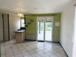 L'intérieur se compose d'une cuisine ouverte sur une belle pièce de vie lumineuse, créant un espace convivial et chaleureux. L'espace nuit propose deux chambres, dont l'une avec accès direct au jardin, une salle d'eau, ainsi qu'un WC indépendant.
