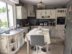 Organisée sur 3 niveaux, elle comprend de conviviaux espaces de vie au rez-de-chaussée avec notamment, une cuisine aménagée et équipée ouverte sur un vaste salon/séjour très lumineux avec un poêle à bois, une chambre, une salle de bain et un WC. A l'étage, un couloir desservant 3 belles chambres, une salle d'eau et un WC. La maison est élevée sur une cave avec un garage, une buanderie et pièces pour stockage. Vous profiterez d'agréables moments dans le jardin arboré et soigneusement entretenu.