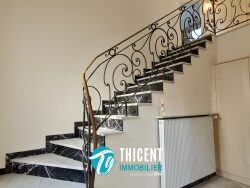 Dès l'entrée, vous bénéficiez d'un espace avec rangements. Un bel escalier en marbre avec ferronnerie mène à l'espace de vie principal. Vous y découvrirez une cuisine entièrement équipée, ainsi qu'un séjour spacieux et lumineux. L'espace nuit se compose de deux belles chambres, avec un balcon commun, ainsi qu'une salle d'eau équipée d'une douche, d'un meuble vasque et de toilettes.
