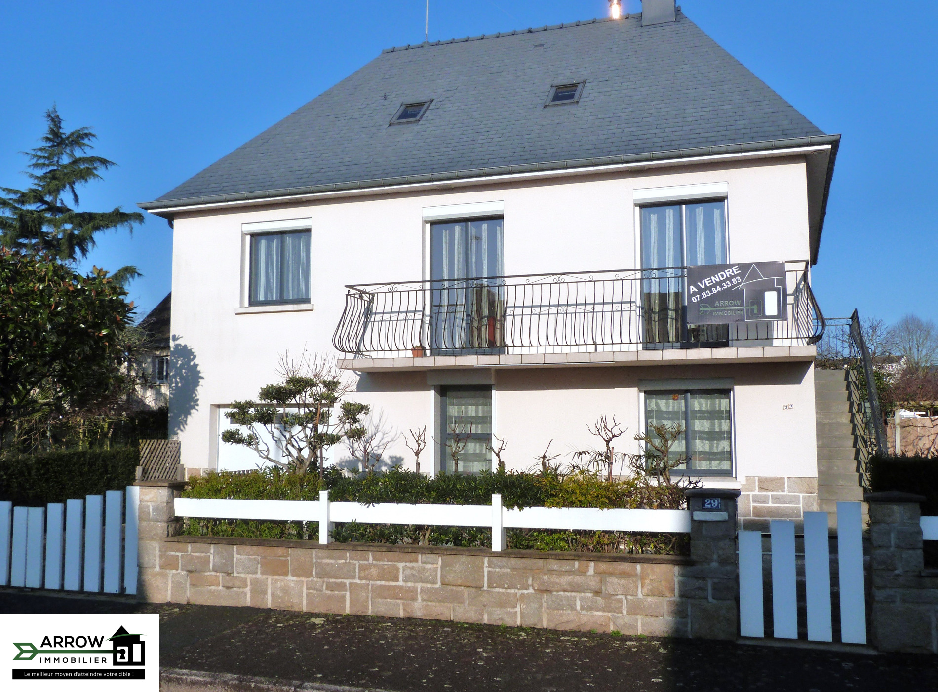 Visite Virtuelle 3D immersive disponible sur notre site internet - L'équipe Arrow Immobilier de Bruz (35170) vous propose en *EXCLUSIVITE* à Bruz (35170) commune de Rennes Métropole proche l'axe Rennes-Nantes à 7 minutes de Rennes (35000) et de de l'axe Rennes-Redon, cette maison d'environ 100m2 habitables sur un terrain de 420m2 non mitoyenne située au calme dans une impasse. Son emplacement privilégié vous permettra de bénéficier de toutes les commodités (commerces, écoles, transports). Cette maison d'architecte, vous séduira par la qualité et le soin apporté aux travaux de décoration d'intérieur et d'extérieur. Elle dispose d'une entrée, d'une cuisine aménagée et équipée ouverte sur une agréable pièce de vie donnant accès à la terrasse et jardin orienté sud, une suite parentale avec salle d'eau et dressing, wc, placard, un garage avec grenier. A l'étage vous trouverez deux chambres dont une avec un grand placard, une salle de bains avec rangements et wc. Scolarité assurée de la maternelle au lycée, réseau STAR, gare SNCF. Ce bien vous est présenté par l'Agence Arrow Immobilier de Bruz (35170) - Rue Siméon Poisson. Erwan GUIHO - Espace Acquéreurs - 07.83.84.33.83. Au prix de 300 150EUR FAI dont 3,50% TTC d'honoraires à la charge de l'acquéreur. Référence agence BR35113. Toutes nos offres sur notre site agencearrowimmobilier com. L'équipe ARROW Immobilier reste à vos côtés pour l'ensemble de vos projets immobiliers. N'oubliez pas, 'le meilleur moyen d'atteindre votre cible : ARROW Immobilier'.
