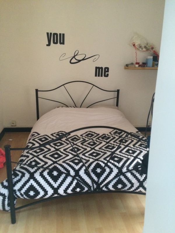 Deux chambres, une salle d'eau, toilettes individuels, un garage, balcon.