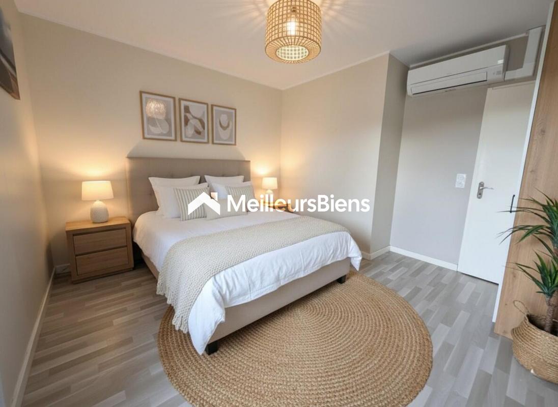 Ce bien vous accueille dans un séjour lumineux de 17m² avec un coin cuisine équipée et moderne de 9m². Il propose également 2 chambres avec rangements. Plusieurs climatisations réversibles garantissant un confort optimal été comme hiver, ainsi que de volets roulants, pour plus de praticité et de sécurité.