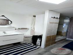 Salle d'eau moderne avec douche et WC séparé.