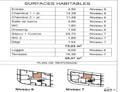 Cet appartement T3 en duplex meublé d'env 72,03 m2 en location en dernier étage avec ascenseur sur Aix en Provence, à 500 m de la gare routière, se compose au 1er niveau : d'un hall d'entrée avec dressing qui dessert la partie nuit de 2 chambres avec rangements, dont une avec loggia, d'une salle de bain et d'un WC indépendant. Au 2ème niveau : d'une cuisine US entièrement équipée ouvrant sur séjour donnant sur une terrasse, d'un dégagement et d'un WC indépendant. Un double garage complète ce bien. Commerces et transport à pied. Disponible le 1er Avril 2026. Loué meublé.