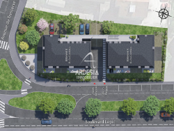 Construction RE2020 Haies végétalisées Stationnements couverts en rez-de-chaussée avec barrière levante Contrôle d'accès sécurisé avec ouverture à distance