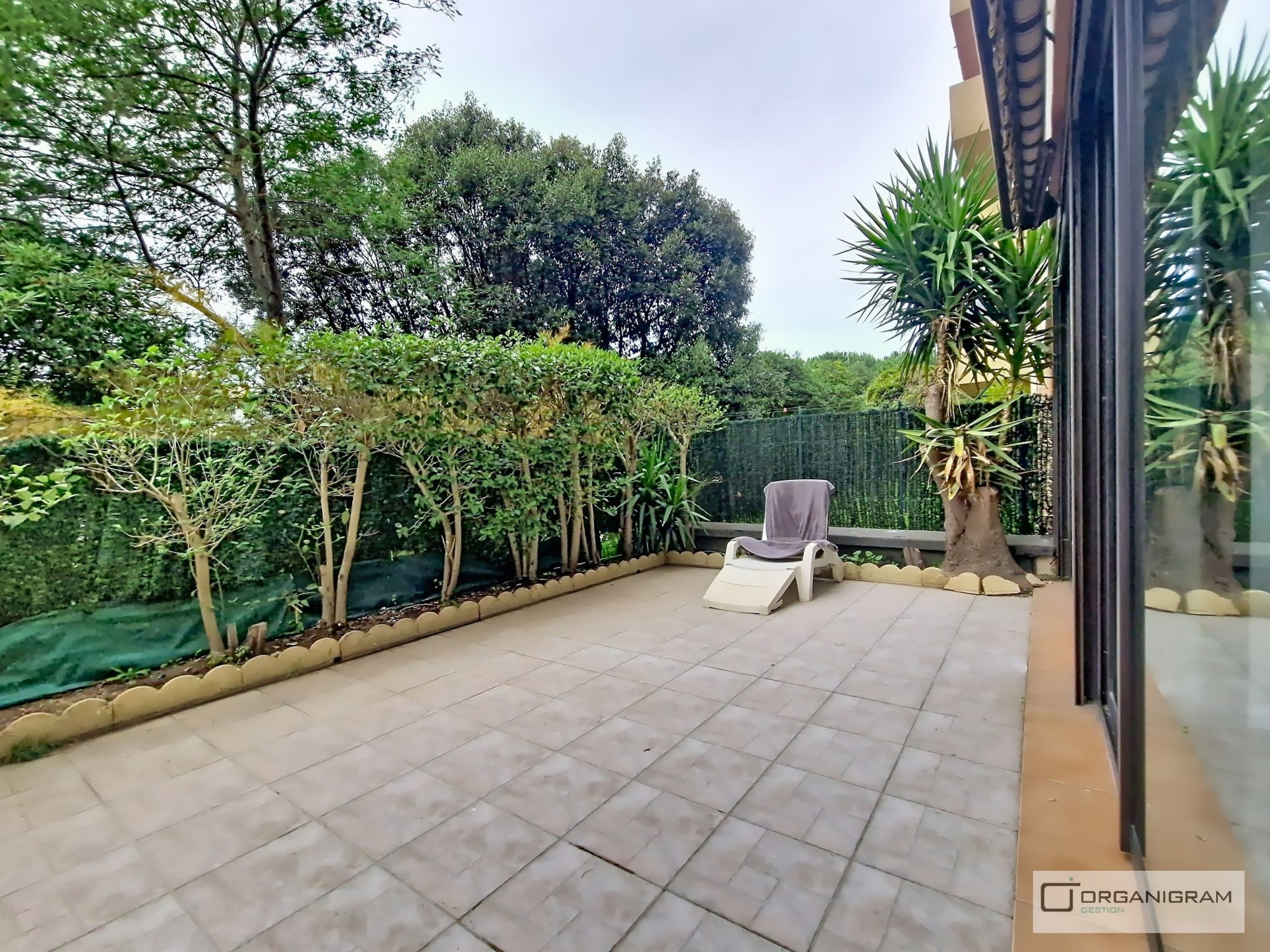 Une entée avec placard, un salon/séjour donnant sur une terrasse, une cuisine aménagée séparée avec loggia, trois chambres avec placard, une salle de bains, un WC indépendant.. Une place de stationnement,