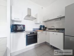 En RDC : Une entrée avec placard, un séjour climatisé donnant sur une terrasse de 10 m², une cuisine aménagée semi équipée, un WC, un coin buanderie. A l'étage : Une chambre climatisée avec un grand placard donnant sur une terrasse de 10 m², une salle d'eau.