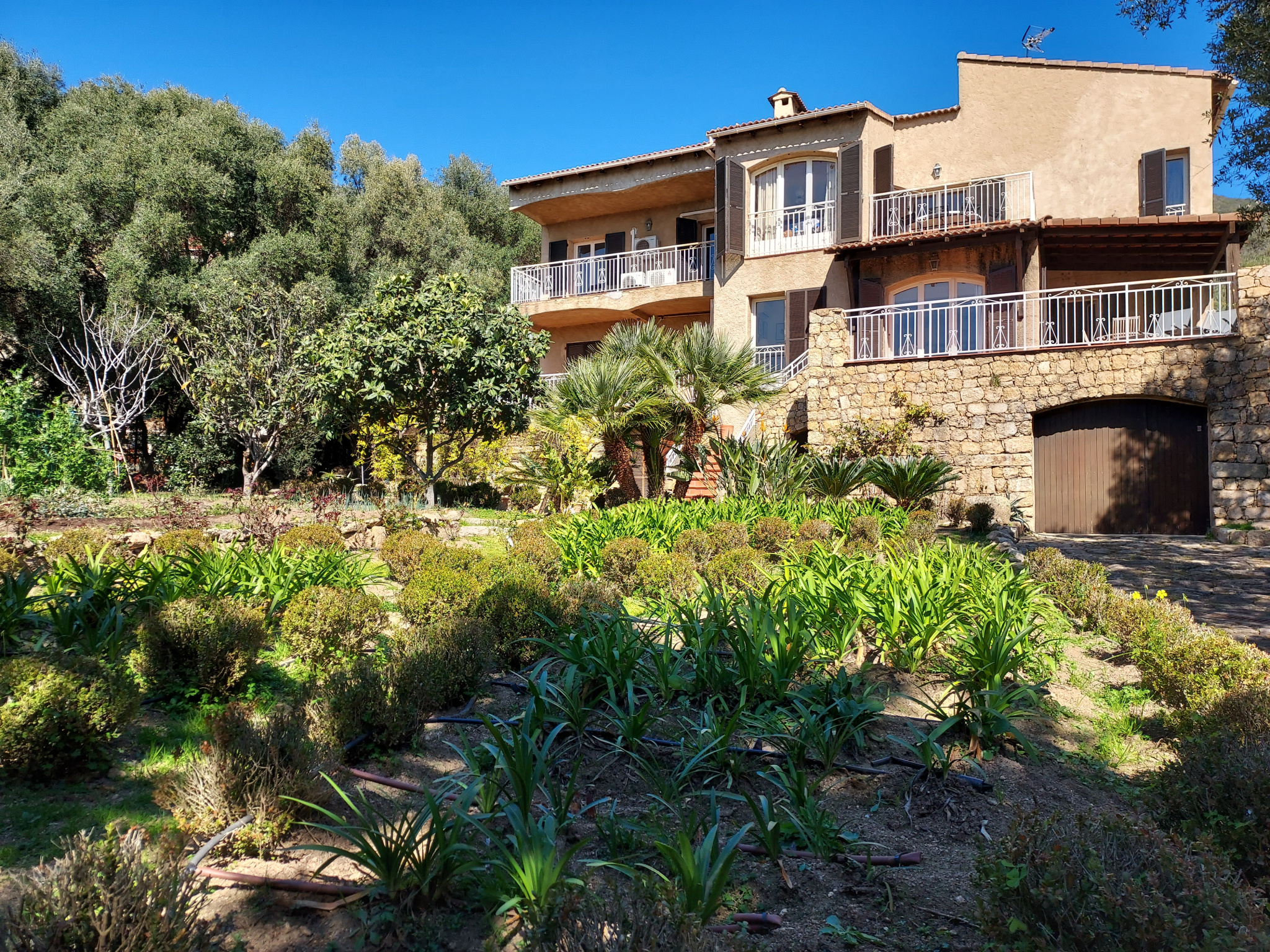 A 4 km du centre ville sur les hauteurs d'AJACCIO, très belle propriété de 328m2 sur un parc arboré de 5 500m2 avec une vue panoramique sur la mer . Villa d'architecte exposée Sud .Depuis le séjour et la véranda ouverts sur la terrasse, une piscine à débordement fait sensation , la plénitude est au maximum. Au Rez de Chaussée: grande suite parentale, A l'étage 2 suites parentales et 3 autres chambres. Prestations de grande qualité. Véranda pour les journées d'hiver, Piscine de 13m60 x 7m10 chauffée, Domotique, alarme, vidéo surveillance, Portail motorisé, Chauffe eau solaire, Climatisation, Chauffage Gaz, 2 forages....grand garage de 175m2 prévu pour logement de gardien. Le parc est une splendeur agrémenté de plus de 200 arbres fruitiers