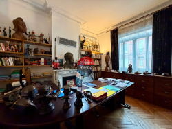 - Au rez-de-chaussée : une entrée desservant un salon/séjour aménagé en bar et bureau, une buanderie, un deuxième bureau indépendant, un WC et une cave