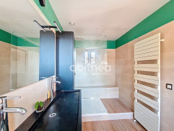 Elle se compose au rez-de-chaussée : - d'une belle entrée avec placard, - d'un wc séparé, - d'une salle d'eau spacieuse de 7,50m2, - d'un dégagement séparant l'espace nuit de l'espace jour - deux belles chambres de 10.65m2 et 11m2, - d'un dressing, bureau ou pourquoi pas une cinquième chambre de 9,50m2, - d'une salle à manger avec rangement de 17m2 donnant sur la cuisine de 11,60m2, - d'un salon / séjour de 34,40m2, spacieux et lumineux, bénéficiant d'une mezzanine et donnant sur la terrasse. A l'étage : - deux belles chambres de 15.20 et 16.20m2, - un wc séparé, - une salle d'eau de 3.80m2. Les caractéristiques : o Chauffage central au gaz de ville o Climatisation réversible o Panneaux photovoltaïques o Jardin arboré orienté sud o Piscine de 8x3m (liner neuf) o Garage avec porte électrique télécommandée o Portail coulissant motorisé