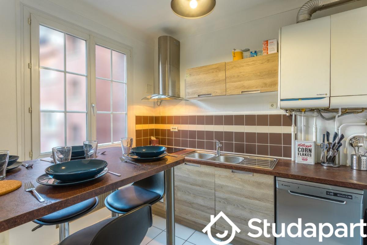 Très belles prestations pour ce T1 en location : refait à neuf récemment, très lumineux, calme, situé dans un petit immeuble de charme de 5 logements, bien agencé, meublé et équipé, ouvertures sur cour, entrée par la cour sécurisée...