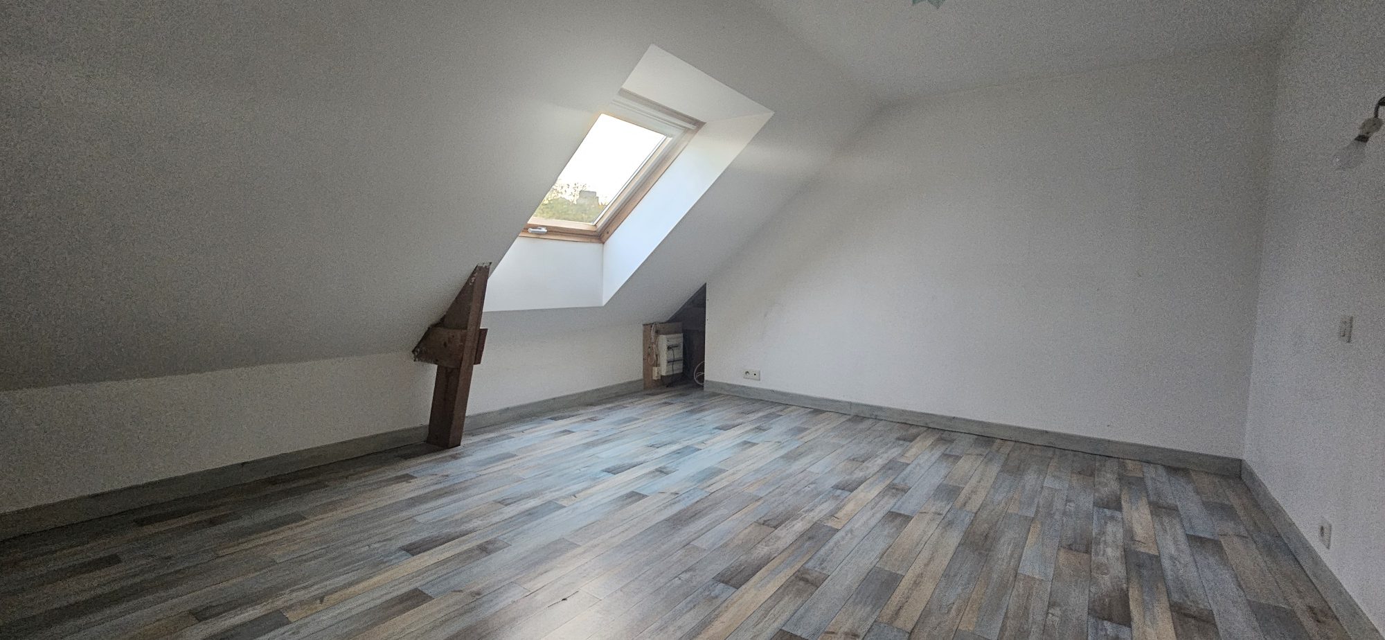 Elle se compose au rez-de-chaussée d'une entrée sur salon et salle à manger, d'une cuisine, d'un couloir desservant une salle de bain, un wc indépendant et deux chambres.