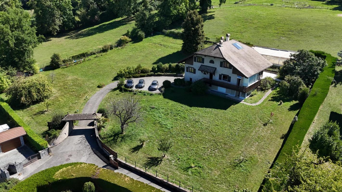 COUP DE COEUR Situé à Charvonnex, à côté de Cuvat et de Saint-Martin Bellevue, à 12,5 km d'Annecy et à 35 minutes de Genève en voiture, au calme, sur un terrain de 1800 m2 environ, partiellement en pente, clos et arboré dont 1000 m2 constructibles, édifiée au 19ème siècle, un ancien corps de ferme en partie d'une surface habitable d'environ 345,458 m2, composée au rez-de-chaussée d'un local commercial et à l'étage de deux appartements, lumineux et ensoleillé, exposée sud-est, en bon état intérieur et extérieur, il comprend :