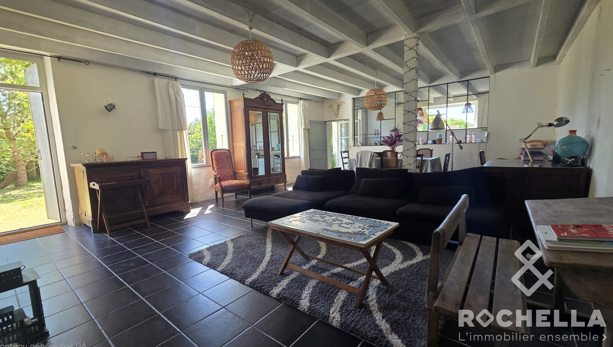 Cet ancien moulin à eau plein de charme est situé dans un quartier paisible de cette dynamique ville de marché. Il offre une richesse d'histoire et de caractère, ainsi qu'un vaste espace de vie et un important potentiel de développement. Autrefois constitué de deux maisons, le bien conserve aujourd'hui deux escaliers, permettant une utilisation flexible en tant que grande maison familiale, création de plusieurs appartements indépendants, ou encore transformation en boutique-hôtel. Au rez-de-chaussée, la propriété comprend une entrée, un salon, une spacieuse cuisine bien équipée, ainsi qu'une grande pièce de caractère avec un bar et une vue sur l'eau en contrebas. On y trouve également deux belles chambres, une salle d'eau et un WC séparé. Toutes les pièces de ce niveau sont équipées de double vitrage et bénéficient d'un chauffage assuré par une pompe à chaleur. Au premier étage, une partie de la maison comprend trois pièces, dont une utilisée actuellement comme chambre, ainsi qu'une suite de pièces attenantes pouvant être aménagées en appartement indépendant avec cuisine, salon, salle d'eau et WC. La seconde partie de cet étage pourrait également être transformée en appartement indépendant et comprend actuellement cinq pièces distinctes. Toutes les pièces de ce niveau disposent du double vitrage, à l'exception de trois fenêtres. Le deuxième étage se compose de deux parties. L'une est déjà aménagée en appartement de quatre pièces avec chauffage au gaz de ville et compteur indépendant, offrant un fort potentiel locatif. L'autre partie a été isolée et est prête pour un futur aménagement. À l'extérieur, plusieurs dépendances et espaces de stockage complètent l'ensemble, ainsi qu'un charmant jardin qui s'étend le long de la bifurcation du canal, offrant un cadre bucolique et rappelant les origines du moulin. Il s'agit d'une opportunité rare d'acquérir une propriété pleine de caractère et de polyvalence, offrant à la fois confort immédiat et potentiel d'évolution. Saint-Jean-d'Angély est une charmante ville historique, réputée pour ses rues médiévales préservées, son Abbaye Royale inscrite à l'UNESCO et son ambiance conviviale. Elle offre d'excellents services au quotidien, avec un hôpital moderne, des écoles de la maternelle au lycée, ainsi qu'un marché animé deux fois par semaine. Le complexe thermal est actuellement en cours de construction, apportant de futurs équipements de bien-être à la ville. Idéalement située, Saint-Jean-d'Angély bénéficie d'un accès direct à l'A10, à la ligne TGV (Paris à environ 3 heures), et se trouve à proximité de Saintes, La Rochelle et de la côte atlantique. C'est une localisation pratique et attrayante, aussi bien pour une résidence principale que pour une maison de vacances.