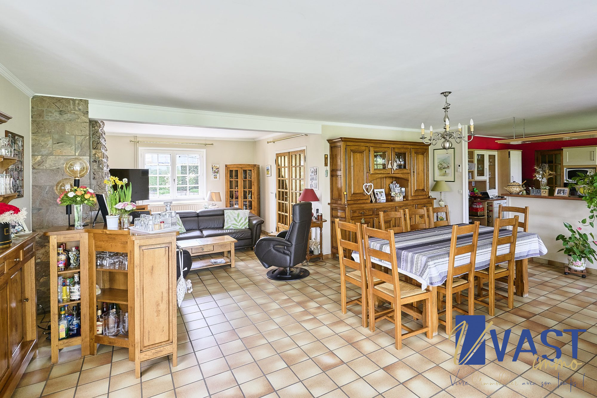 Pour compléter cette jolie maison, nous retrouvons également une grande lingerie, un garage et une cave avec une cuve de récupération d'eau de pluie servant pour les WC ainsi que pour les machines;