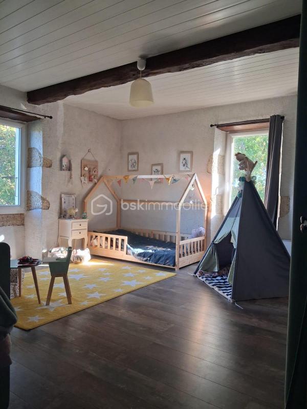 L'espace à l'étage, chaleureux et convivial, est stylé par sa charpente apparente, ses murs en pierre et son parquet.