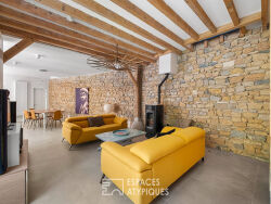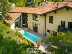 Située sur la commune de Lyon 9, dans le village de Saint Rambert, face à l'île Barbe, cette maison de caractère de 223 m² est le fruit de la rénovation par un architecte d'anciennes écuries. Elle s'élève sur un terrain arboré et bucolique de 5 000 m² et profite d'une belle terrasse avec piscine. Dès l'entrée par le grand portail, le murmure de la source et le petit bassin des carpes Koï introduisent la quiétude des lieux. Une vaste terrasse mène ensuite à la partie principale de la maison. Le hall d'entrée, dont le caractère affirmé rappelle l'histoire des anciennes écuries, bénéficie de nombreux rangements et marque une véritable transition avec l'extérieur. Une première suite avec salle d'eau prend place à ce niveau, offrant un espace nuit indépendant, idéal pour un adolescent ou des convives de passage. L'espace de vie s'organise en enfilade de plusieurs parties ouvertes. Un salon de réception, réchauffé par son poêle à granulés lors des soirées d'hiver, s'ouvre sur une grande baie vitrée laissant entrevoir la piscine et la végétation environnante. La salle à manger, idéalement positionnée, conduit à la cuisine contemporaine et design. Celle-ci, issue d'une extension moderne, bénéficie d'une lumière traversante et d'un accès aux deux terrasses. A l'étage, la partie nuit a été entièrement repensée. Une suite parentale avec dressing et salle d'eau occupe une aile de la maison, offrant un espace intime aux parents. Deux autres chambres se partagent une salle de bains contemporaine, le tout distribué par un couloir lumineux qui conserve le charme d'antan. L'une des chambres profite d'une grande mezzanine optimisant l'espace. Une pièce discrète complète ce niveau, pouvant servir de bureau, coin lecture ou tout autre usage nécessitant tranquillité. Le jardin paysager, riche en plantations et agrémenté d'arbres centenaires, compose un véritable tableau changeant au fil des saisons. Ses dimensions très généreuses garantissent une parfaite intimité. En résumé, cette maison au cachet certain, rénovée avec des matériaux de haute qualité, offre un équilibre parfait entre vie citadine et douceur campagnarde. Véritable coup de coeur, elle se situe à proximité des commerces de Saint Rambert, de la Saône, ainsi que de toutes les commodités et des transports urbains. Cave voûtée de 17 m² Garage fermé Chauffage au gaz et poêles à granulés DPE : C / GES : C Montant moyen estimé des dépenses annuelles d'énergie pour un usage standard, indexées aux années 2021, 2022, 2023 : entre 3 160 euros et 4 340 euros (abonnement compris). Contact : Céline - 06 75 44 67 18 Celine KANNENGIESSER (EI) Agent Commercial - Numéro RSAC : 949 658 371 - LYON.