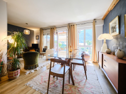 Au dernier étage d'une copropriété calme et verdoyante, superbe duplex de 128,40m2 surface totale. Vue dominante sur le Mont Veyrier et les jardins il se compose de plain pied d'un grand salon-séjour avec cheminée ouvrant sur un balcon Sud, d'une cuisine séparée, une chambre avec salle de bains et toilettes séparés. A l'étage 3 chambres mansardées et 1 salle d'eau avec toilettes. En annexes 1 cave et grand parking de copropriété. Un cadre de vie rare, à découvrir rapidement! Les informations sur les risques auxquels ce bien est exposé sont disponibles sur le site Géorisques : www.georisques.gouv.fr