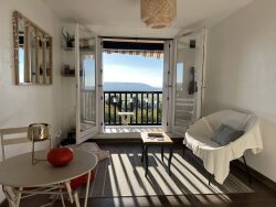 L'Agence Aubert vous propose sur la corniche du Mont-Canisy, un appartement de type 2 pièces disposant d'une entrée avec placard, un séjour ouvrant sur un balcon avec une vue dégagée mer et campagne, une cuisine, une chambre, une salle de bains et des WC séparés