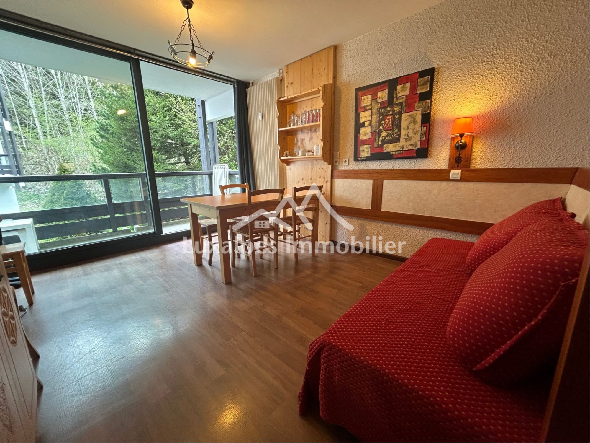 Combloux, route du feug: Dans une copropriété recherchée, avec grande terrasse sans vis à vis, face au massif du Mont-blanc, ce studio cabine est vendu meublé et équipé pour 4 personnes. Il est vendu avec place de parking au sous-sol, et cave individuelle. Accès facile au centre du village. RARE ! Les informations sur les risques auxquels ce bien est exposé sont disponibles sur le site Géorisques : www.georisques.gouv.fr