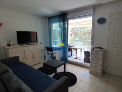 FREJUS quartier Tour de Mare - Appartement 3 pièces meublé de 38,68 m2 situé au 1er étage avec ascenseur, terrasse exposée Ouest, parking privatif dans l'enceinte de la résidence. Hall d'entrée, séjour, cuisine ouverte équipée (lave linge, lave vaisselle, frigo, micro-ondes, four grill), 2 chambres avec placard et lits en 140, 1 salle d'eau et wc séparés. Terrasse avec vue sur le Lac Aurélien.