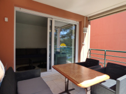 FREJUS quartier Tour de Mare - Appartement 3 pièces meublé de 38,68 m2 situé au 1er étage avec ascenseur, terrasse exposée Ouest, parking privatif dans l'enceinte de la résidence. Hall d'entrée, séjour, cuisine ouverte équipée (lave linge, lave vaisselle, frigo, micro-ondes, four grill), 2 chambres avec placard et lits en 140, 1 salle d'eau et wc séparés. Terrasse avec vue sur le Lac Aurélien.