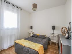 Il se compose au rez-de-chaussée supérieur, d'une entrée, de trois chambres, d'une salle de bains, un garage et de WC séparés. Au rez-de-chaussée inférieur, un dégagement dessert un double séjour avec accès terrasse, une cuisine équipée, un cellier/buanderie et un WC.
