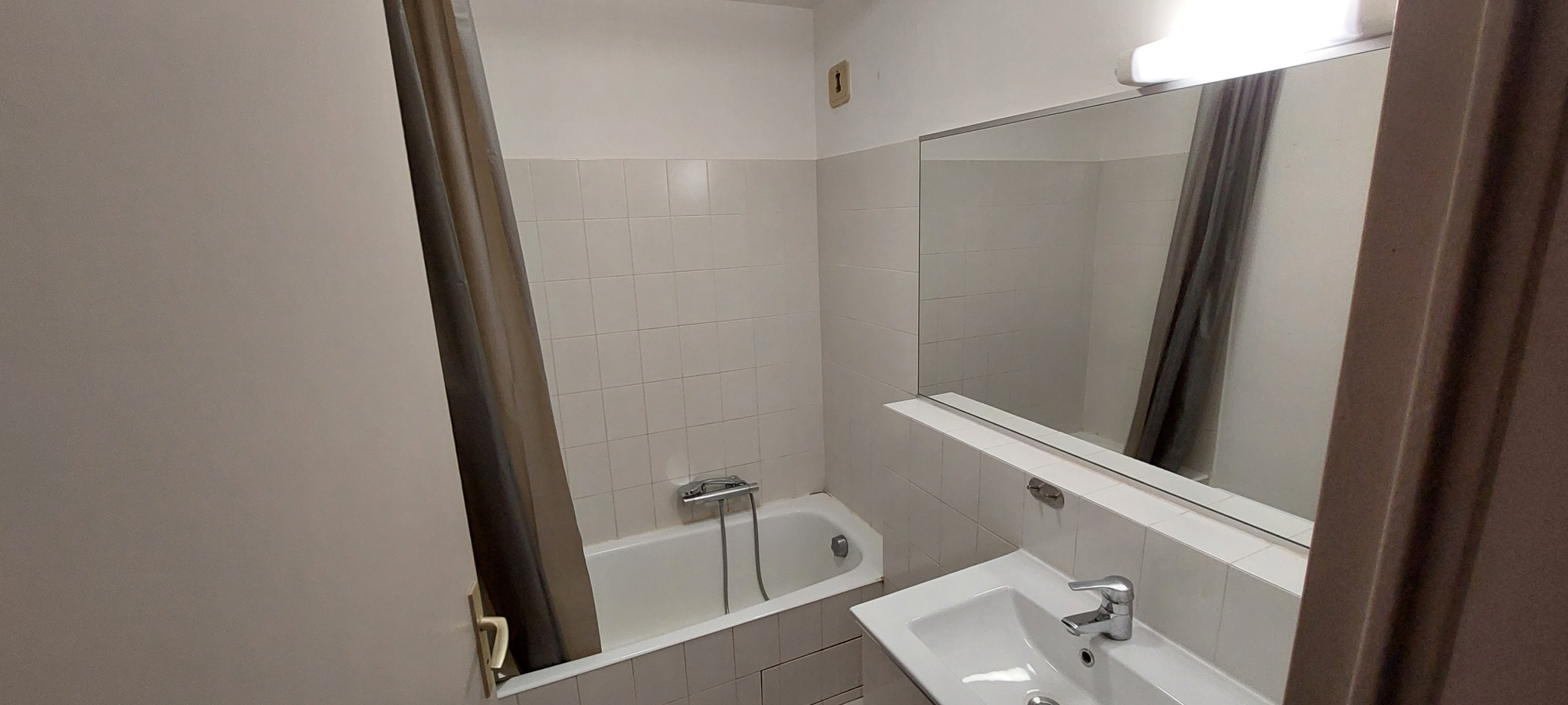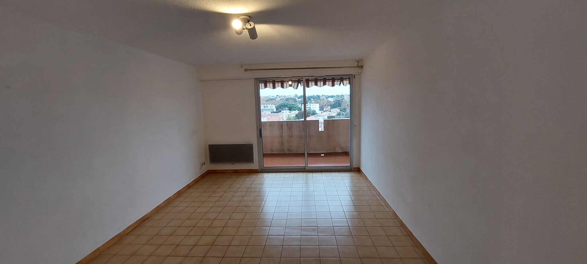 FREJUS dans une résidence sécurisée avec piscine et tennis - Appartement 2 pièces à louer vide à l'année Appartement 2 pièces de 46m2 au 2e étage avec ascenseur, comprenant : Hall d'entrée, WC, séjour avec placard, cuisine aménagée semi-équipée (plaque vitro 2 feux, hotte), dégagement avec placard, une chambre avec placard et une salle d'eau. Terrasse exposée ouest vue dégagée donnant sur le parc. Cave et parking privé