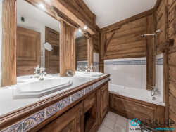 Appartement ad'une résidence de standing avec gardien située dans un quartier calme et prisé de Courchevel 1850 Un grand balcon vous offre une superbe vue sur les sommets (Bellecôte et Dent du Villard) et la vallée. Accès direct au domaine skiable par le télésiège de Pralong. Décoration soignée style montagne 'vieux bois'. Composé : -d'une entrée, -d'une chambre double, -d'une salle de bain avec baignoire et double vasque, -d'un WC séparé avec lavabo, -d'une cuisine semi-ouverte entièrement équipée, -d'un salon / salle à manger avec baie vitrée donnant sur la balcon En dépendances : un garage, une cave et un casier à skis
