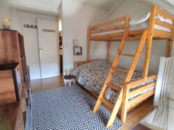 SUR LES HAUTEURS DES ANGLES charmant appartement composé de 2 niveaux, au rez-de-chaussée avec un séjour cuisine et au 1 er étage avec chambre et salle de bains. Exposé plein EST donnant sur le lac et les montagnes, au calme et clair. Avec un garage sous l'appartement. Navette gratuite à proximité et à 1.5 km des commerces. Appartement rénové.