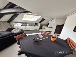 D'une surface de 60 m² au sol, il se compose d'un séjour avec cuisine, de 2 chambres, d'une salle de bains et de WC séparés.