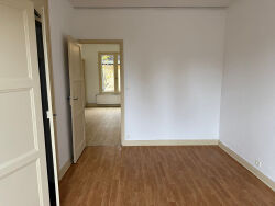 Appartement de type 3, situé au rez-de-chaussée d'une petite copropriété, composé : d'un hall d'entrée, séjour, cuisine semi-ouverte aménagée et équipée (plaque de cuisson, hotte, four, lave-vaisselle), une salle d'eau avec WC ainsi que deux grandes chambres disposant chacune d'un placard. Box privatif à usage de stockage. Nombreux espaces de rangement. Chauffage central réalisé par une chaudière individuelle gaz. Les charges comprennent : l'eau froide et l'entretien annuel de la chaudière.