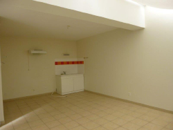 Appartement situé en rez-de-chaussée comprenant entrée avec placards, grande pièce à vivre avec coin cuisine, couloir desservant deux chambres, toilettes, salle de bains, chauffage gaz, terrasse, petit jardin et deux places de parkings. Disponible fin août 2023. Loué vide.