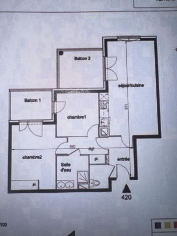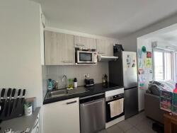 Il dispose de deux balcons, l'un accessible depuis la cuisine meublée et équipée (plaques et hotte), l'autre depuis les deux chambres, dont une avec placard intégré. Le couloir avec grand placard de rangement mène également à une spacieuse salle de bain et à des toilettes séparées.