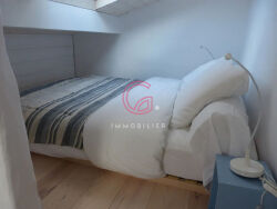 A quelques pas de la plage et dans le centre du village de MIMIZAN Plage. Venez découvrir cet appartement avec sa terrasse couverte. Dans une cour commune entièrement close. Vous passez par la terrasse couverte et entrez dans la cuisine, a gauche, la salle d'eau avec sa douche et à droite un salon et son escalier. A l'étage, 4 couchages sous les toits avec une hauteur de moins d'1,50m surface totale de l appartement est de 28m2 dont 16,51m2. Idéal investisseur pour location saisonnière ou l'année. Disponibilité après la saison. "logement à consommation énergétique excessive" Contactez GOSSELIN immobilier au 05 58 78 23 89. Copropriété de 6 lots. Charges annuelles : 350 euros.