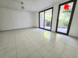Idéalement situé au calme absolu, avenue Saint Barthélémy, à moins de 10 minutes à pied du tramway, dans un immeuble des années 90 bien entretenu, appartement type 1 situé en rez-de-jardin et comprenant un hall d'entrée avec placard, une belle pièce de vie avec coin cuisine donnant directement sur la terrasse de 12m2 et le jardinet de 15m2, et une salle de bains avec baignoire vasque et toilettes.