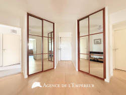 L'Agence de l'Empereur vous présente en exclusivité ce bel appartement de 116,3 m2 situé au 4e étage avec ascenseur, au sein d'une résidence très appréciée avec gardien, construite en 1986. Il se compose ainsi: une grande entrée avec placards intégrés, un séjour de 39 m2 baigné de lumière orienté Sud, dont 5,20 m2 de véranda attenante en son milieu. Une cuisine séparée de 11 m2 bien aménagée avec coin dînatoire, une suite parentale de près de 20 m2 comprenant chambre avec placard intégré, salle d'eau avec double vasque et toilettes suspendues séparées. De l'autre côté de l'appartement, un espace nuit enfants avec 2 chambres de 10 m2 et 13,70 m2, une salle de bains et des toilettes séparées. On apprécie la qualité de vie reconnue de la résidence, la distribution des espaces et les volumes, le lumineux séjour avec sa véranda, les placards nombreux, la suite parentale et la partie enfant séparée. Chauffage électrique à inertie, double vitrage avec volets roulants. Un box et une cave en sous-sol. Taxe foncière 2024 : 1 390 EUR. Charges de copropriété environ 760 EUR/trimestre, incluant l'eau froide et l'entretien courant de la résidence. Commerces à proximité, école Pyramide à 3 minutes, centre-ville bas de Suresnes à 12 minutes à pied, bus 175, 144, 93 à quelques pas, tram T2 à 10 minutes à pied. Visite en vidéo 4K : https://www.youtube.com/embed/hg5WL6oqgbI?si=KkbIyZCn4jQkBvQt Les informations sur les risques auxquels ce bien est exposé sont disponibles sur le site Géorisques : www.georisques.gouv.fr