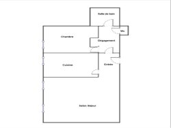L'appartement se compose : d'une entrée, d'un séjour de 19 m2, d'une cuisine équipée, d'une chambre, d'une salle de bains et d'un wc séparé.